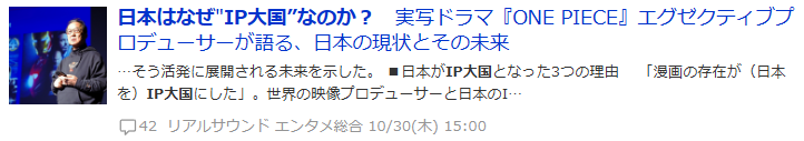 〔REALSOUND〕日本はなぜ”IP大国”なのか? 実写ドラマ『ONE PIECE』エグゼクティブプロデューサーが語る、日本の現状とその未来